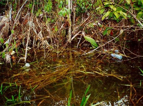 (Brazil 21より続く) 舟で帰る途中、ある立木の奥に立ち寄る。丸太の柱が何本かあり、その上に青いプラスチックのテント地が張ってある。マナウス周辺の釣りバカ達が夜を徹して釣りに来るときに泊まる場所らしい。約五メートル四方。しかし、こんなところに…