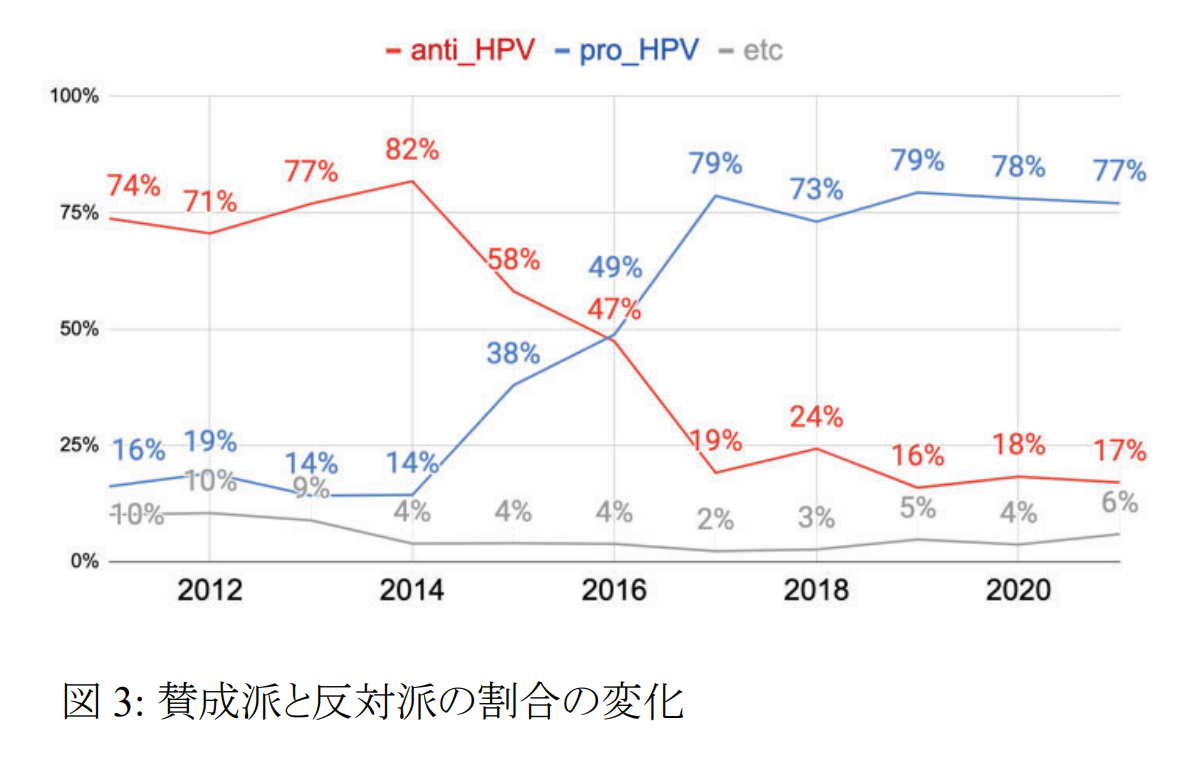 林ほか「HPVワクチンをめぐる日本のツイッター上の賛否両論の対立と変化」